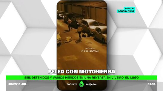 Un vecino de Viveiro, en Lugo, ha grabado una pelea entre varios hombres. En mitad de la reyerta, que ha terminado con dos heridos por arma blanca, uno ha sacado una motosierra y ha empezado a perseguir a otro mientras un compañero le pegaba.