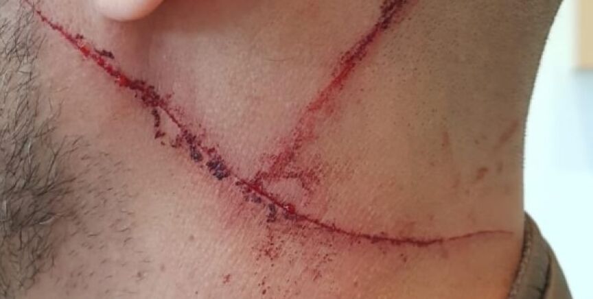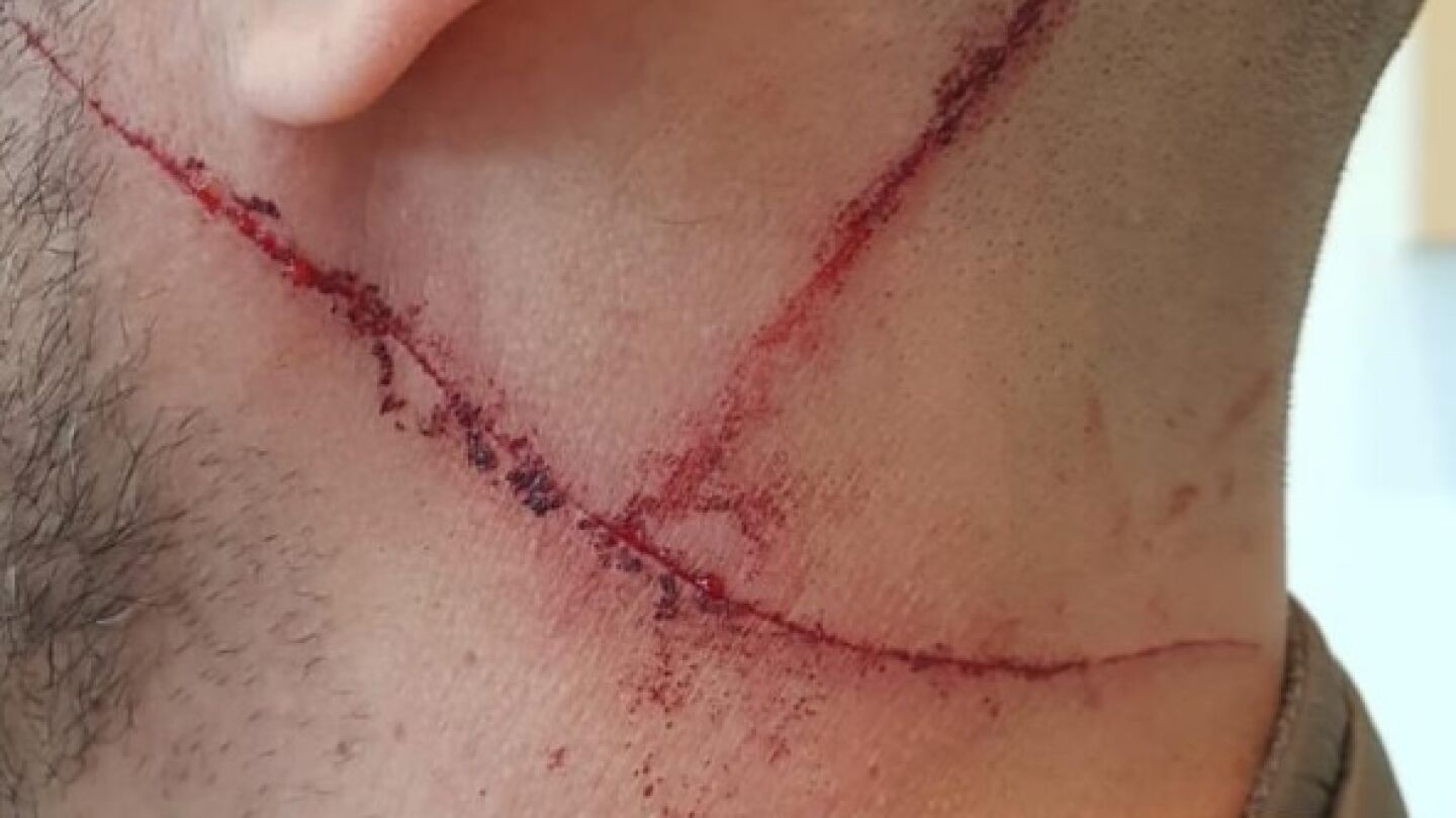 En un momento álgido de la discusión, le atacó con una navaja y le hizo dos pequeñas heridas en el cuello al agente. El GEO se identificó entonces como policía y sacó el arma reglamentaria para reducir al hombre, que logró con la ayuda de otros compañeros fuera de servicio. Finalmente, fue arrestado acusado de delitos de tentativa de homicidio, amenazas y atentado a la autoridad.