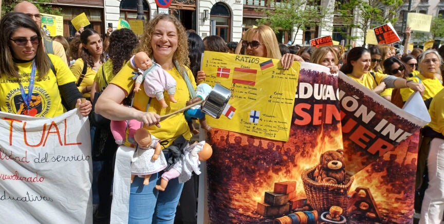 Las reclamaciones de las educadoras son claras: incluir al sector de la Educación Infantil en la nueva ley educativa, que regula ratios y horas lectivas. Desde el colectivo subrayan que dependen de unos "decretos de mínimos que son abusivos, obsoletos y muy alejados de las recomendaciones de la Unión Europea". Lo que plantean es que haya una educadora por cada 3 bebés (0-1), por cada cinco niños de 1 a 2 años y por cada seis, de 2 a 3 años.