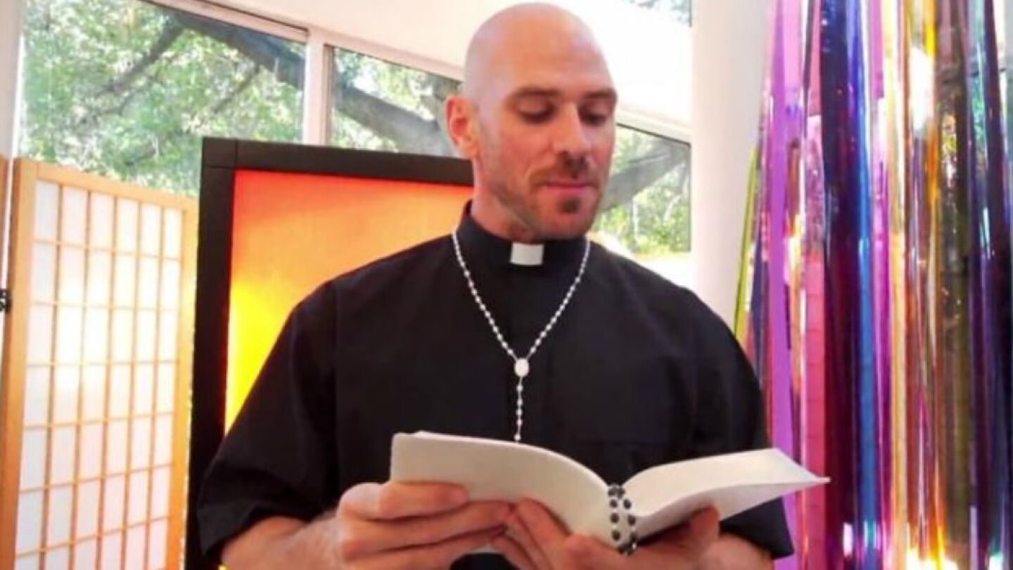 En mitad del texto de la hoja parroquial se ve la imagen de Johnny Sins y Jayden Jaymes acompañada de la frase en portugués "Nos días actuáis é muito comum ver discussões bobas entre casais. Falta compreensão e diálogos saudáveis" (Hoy en día es muy común ver discusiones bobas entre parejas. Falta comprensión y diálogos saludables).