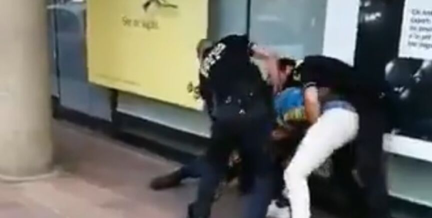 En el vídeo, difundido por Espai Antirracista, se aprecia que tres agentes intentan reducir al hombre en la calle mientras este grita "no me pongo mascarilla porque no tengo".