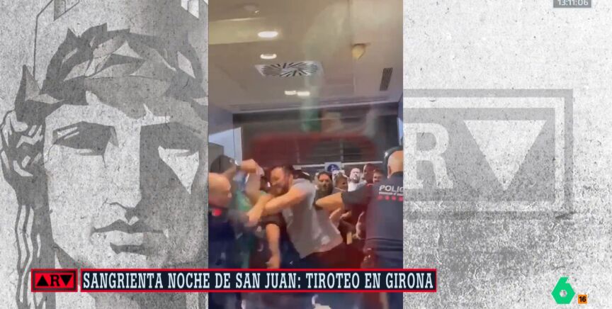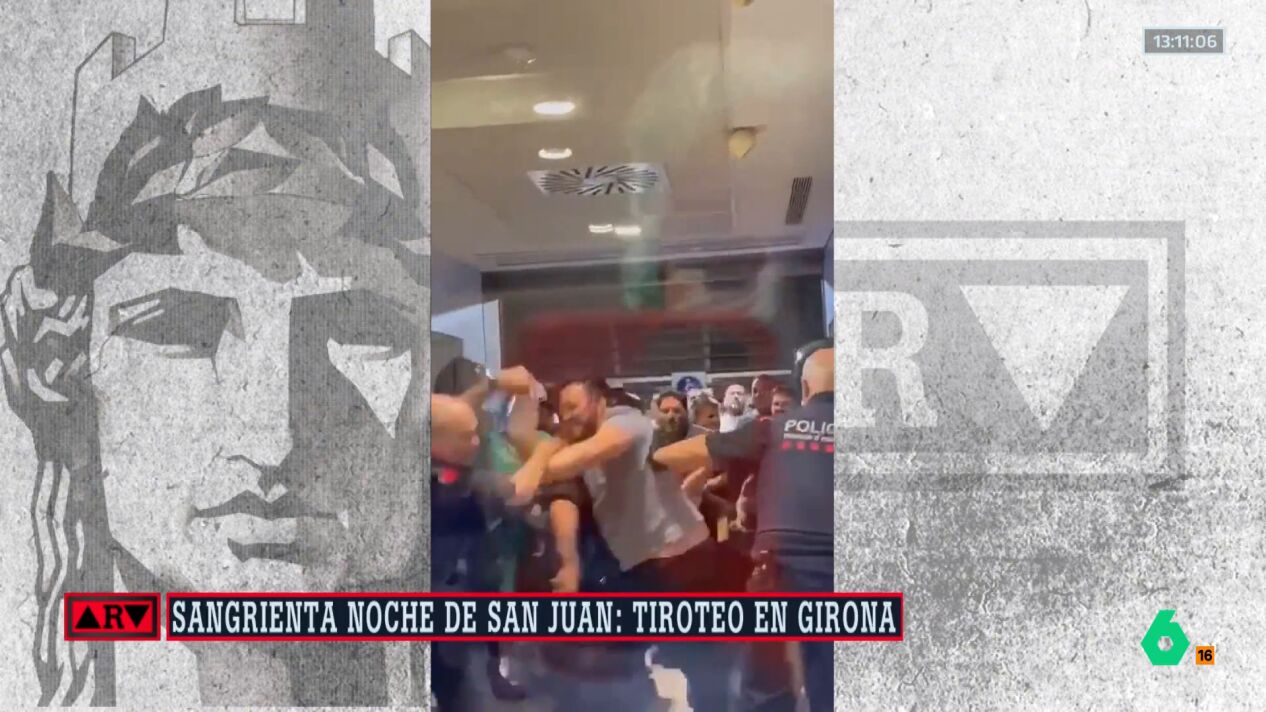 Imágenes de cómo los implicados en el tiroteo de Girona cargan contra los Mossos que protegen el hospital en el que se encuentran las víctimas