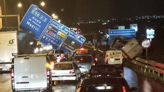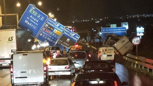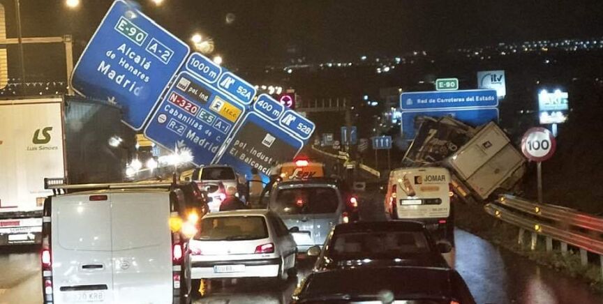 Un camión de grandes dimensiones provocó este lunes por la noche un impactante accidente en la autovía A2 a su paso por Guadalajara que provocó el corte de la circulación.