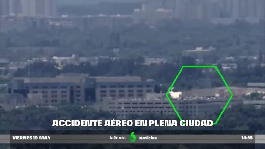 La avioneta, que transportaba una lona de publicidad, comenzó a perder altitud. El piloto pidió permiso a los controladores para soltarla, pero terminó enganchada en un edificio y el aparato se estrelló en una avenida muy concurrida.