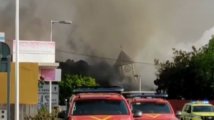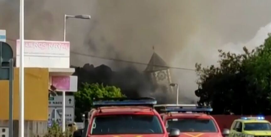 Las impactantes imágenes del colapso del campanario de Todoque tras ser alcanzado por una nueva lengua de lava