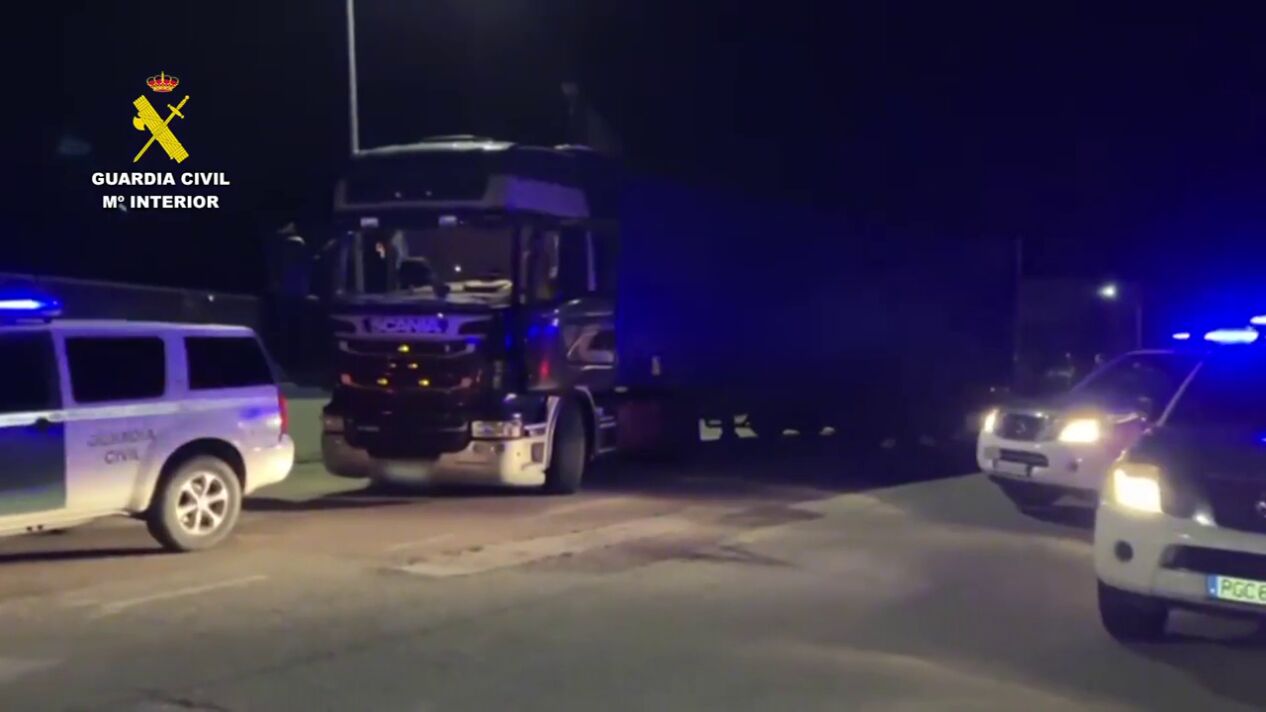Los agentes interceptaron el camión para identificar a su conductor y comprobar la documentación del vehículo. Durante el registro, comprobaron que la carga del semirremolque estaba vacía pero notaron unas láminas metálicas que estaban colocadas de forma irregular.