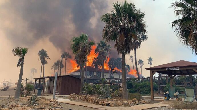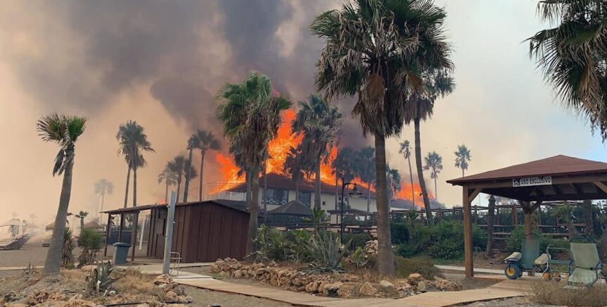 Las llamas han calcinado completamente el centro comercial Laguna Village y han afectado a un hotel cuyos huéspedes han tenido que ser evacuados, al igual que los residentes de una treintena de viviendas.