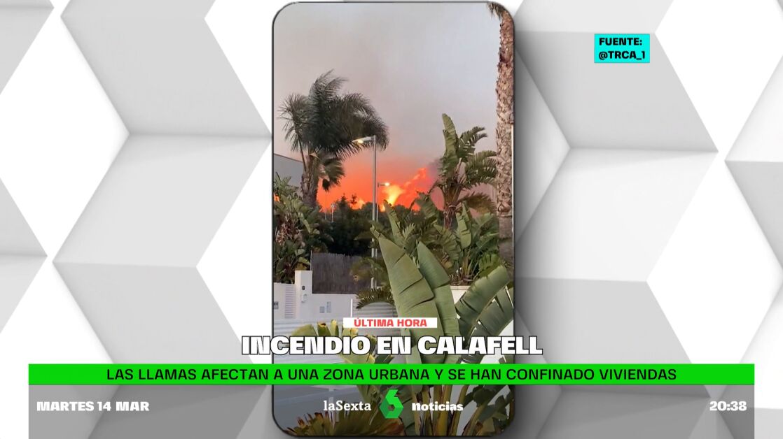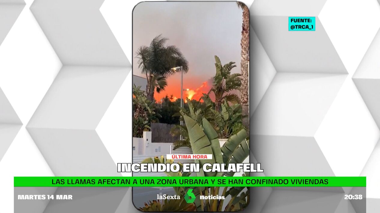 Los Bomberos de la Generalitat de Cataluña han estado trabajando la noche de este martes en la extinción de un incendio en Calafell (Tarragona). El fuego se ha declarado en una zona forestal cercana a dos urbanizaciones de la localidad, Mas Mel y Bellavista, en las que se ha pedido el confinamiento de los residentes, y los Mossos d'Esquadra han desalojado a 11 personas.