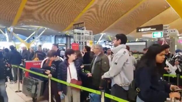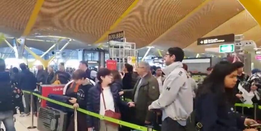 Indignación entre los pasajeros de Iberia en Madrid por los retrasos en la facturación: "Es una vergüenza"