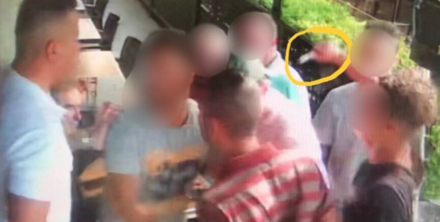 Cuando llegan hasta el lugar, uno de los trabajadores del establecimiento sale para comprobar qué está pasando y se forma un pequeño tumulto. En ese momento, uno de los ladrones saca un arma blanca a intenta apuñalar a los turistas.