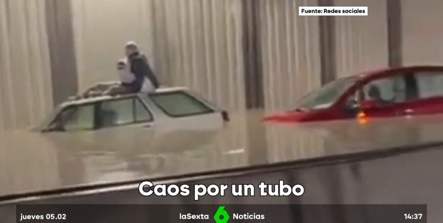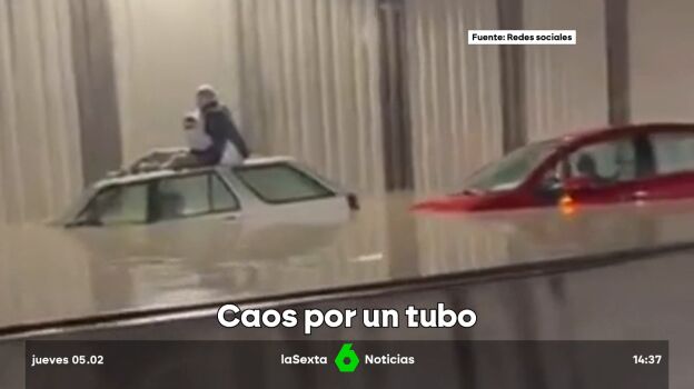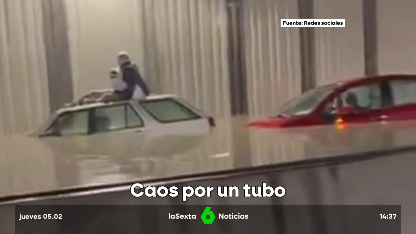 Los detalles La rotura de la tubería, de un metro de diámetro, ha provocado un espectacular géiser que rápidamente ha inundado la zona. Los bomberos han tenido que ayudar a salir a una veintena de conductores del túnel de acceso a Barajas. No hay heridos.