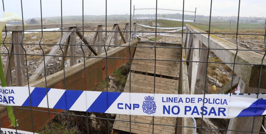 Faltaba una de las lamas de madera de la plataforma y otra parte similar en el otro extremo del puente, y se observaba en el mar, "en el fondo de la grieta, restos de lamas y vigas", dice el acta.
