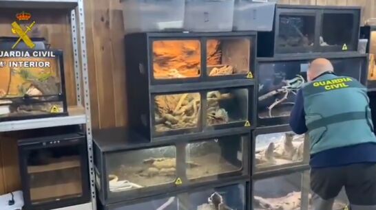 Con la autorización de entrada y registro, efectivos del Seprona, con la colaboración de los Bomberos de Santa Olalla, accedieron este viernes a la finca y en un anexo a la vivienda, en una edificación usada a modo de museo, con aire acondicionado en permanente uso para asegurar la temperatura idónea de calor siempre por encima de los 20 grados, se comprobó que el investigado albergaba numerosas serpientes y escorpiones en sus terrarios correspondientes.