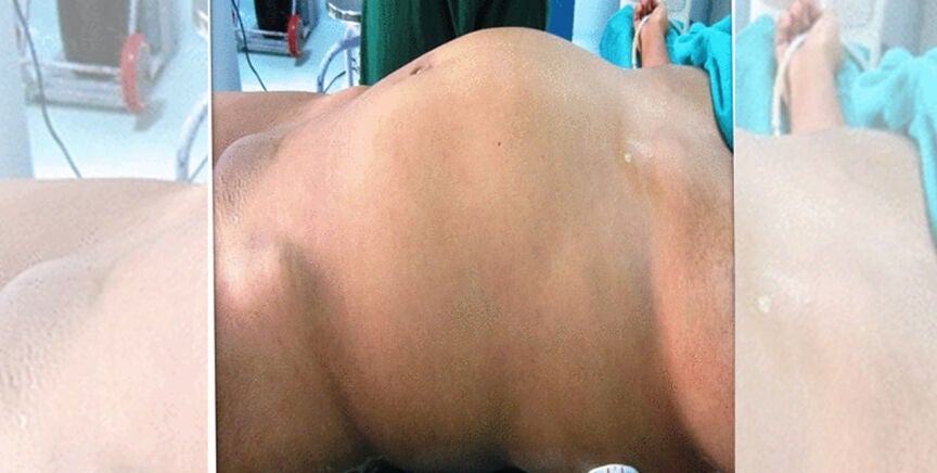 Los médicos hallaron pelo, tejido óseo y otras partes del cuerpo en el interior del tumor. Se trata de un caso de 'fetus in fetu', una condición extremadamente rara que se da solamente en uno de cada 500.000 nacimientos.