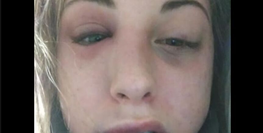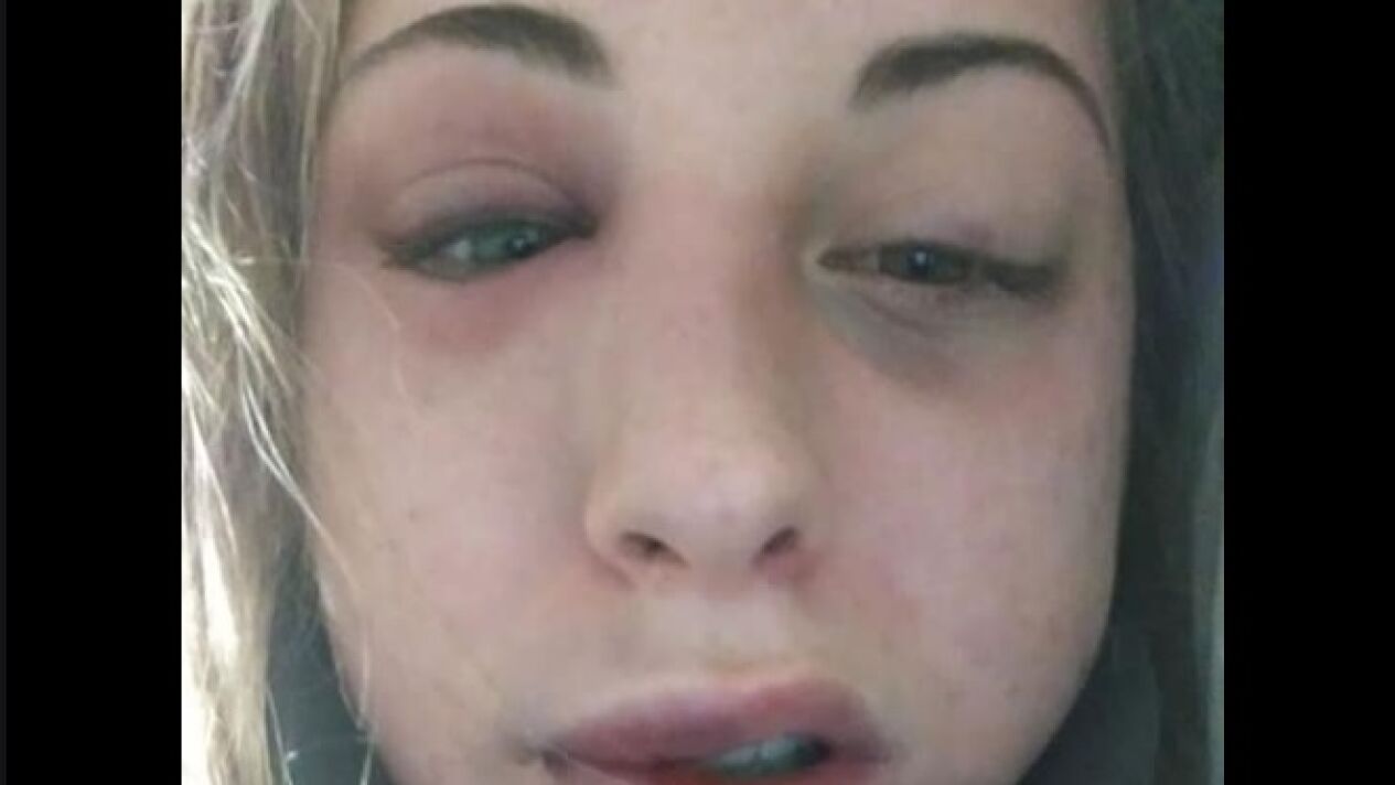 La chica compartió las fotografías de la cara hinchada y llena de moratones en su Facebook.