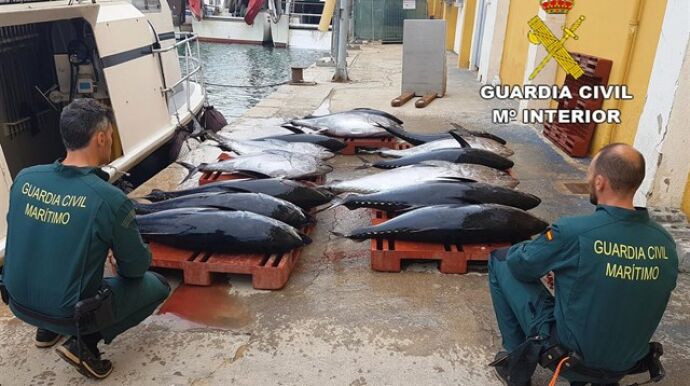 En total, se incautaron 80.000 kilos de atún, que suponían un beneficio de más de 12 millones de euros, según las estimaciones de la Guardia Civil.