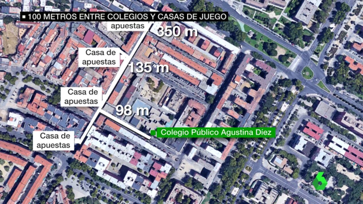 Un salón de juego muy próximo a un colegio, esa es una realidad que se da en muchos barrios de Madrid. En concreto, en Vallecas, el distrito con la renta más baja de la ciudad de Madrid, los menores sólo tienen que caminar 98 metros hasta la primera esquina y toparse con una casa de juego. No es la única, unos metros más allá hay otra. Y bajando la calle otra más.