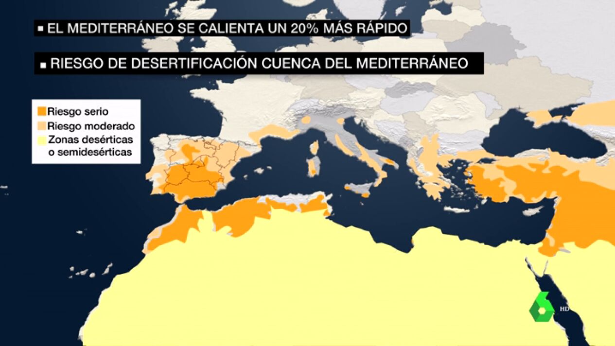 La Cuenca del Mediterráneo se enfrenta, según este panorama, a un riesgo serio de desertificación que afectará, especialmente, a las poblaciones más cercanas a la costa.