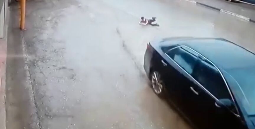 Una cámara de vigilancia captó el momento en el que un menor se salva por los pelos de ser atropellado en la ciudad de Kurchalói, en Rusia.