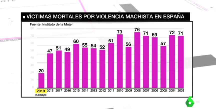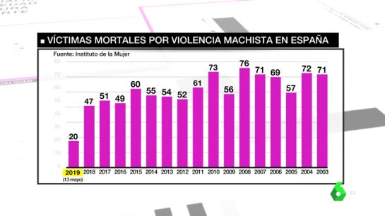 Los datos del instituto de la mujer muestran la evolución en el número de víctimas los últimos 15 años. El año pasado todavía fueron asesinadas 49 mujeres. El peor año fue el 2008 con 76.