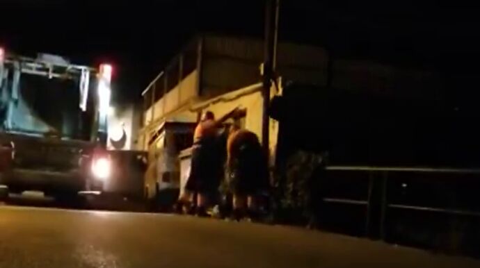 En las imágenes, de más de un minuto, se pueden ver a dos trabajadores de Residuos Sólidos Urbanos arrojando al cauce de arroyo Segundo varias bolsas de basura que estaban fuera de los contenedores situados en el Polígono Industrial La Ermita, a pesar de estar a escasos metros el camión de recogidas.