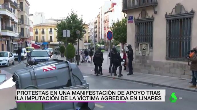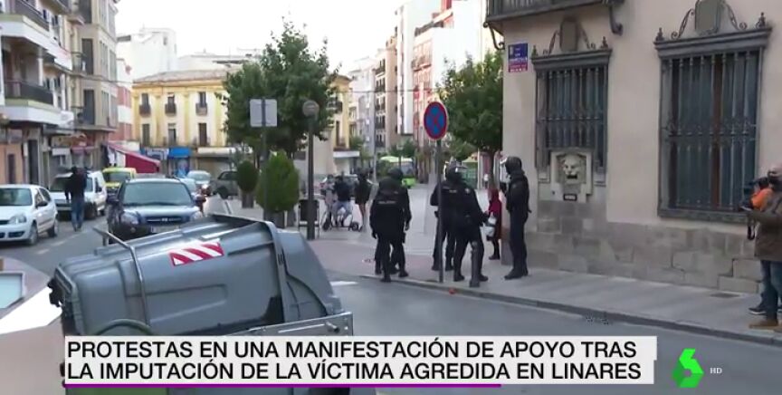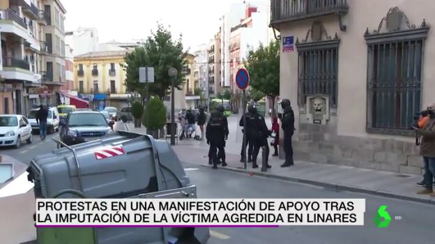 Varios manifestantes han organizado una concentración en Linares, Jaén, en apoyo al hombre involucrado en una pelea producida el pasado 12 de febrero con dos agentes de la Policía cuando se encontraban fuera de servicio. Durante la movilización se han producido varios altercados.