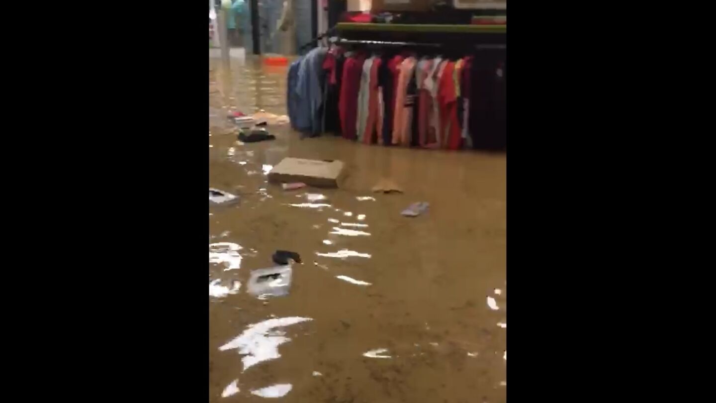 Cuando los dueños acudieron a comprobar el estado de la tienda se encontraron con que el agua lo había llenado todo, llegando incluso hasta el almacén. Bolsos, ropa, zapatillas y gran parte del mobiliario ha quedado dañado por el agua.