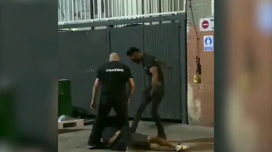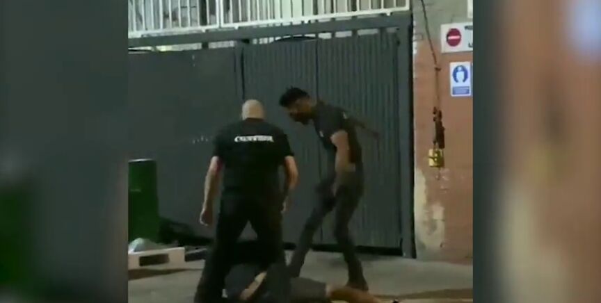 En un segundo vídeo se puede ver cómo les separan y mientras un portero habla con uno de los jóvenes, al otro continúan propinándole patadas y golpeando con una porra.