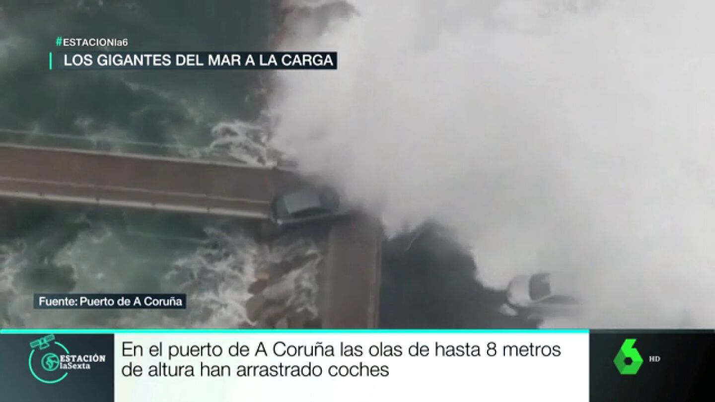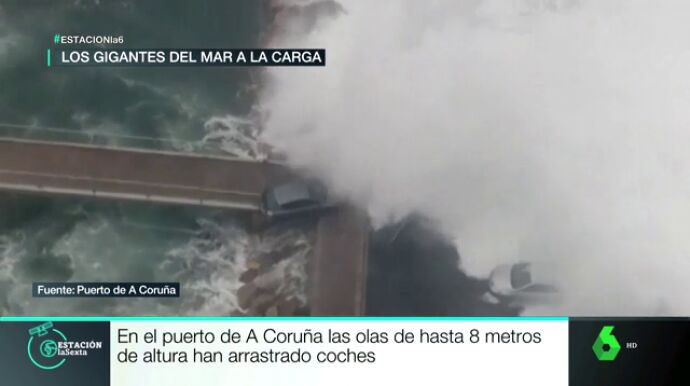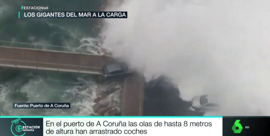 Y el agua también se ha colado en en cualquier rincón de la costa de Cantabria, mientras que en el puerto de A Coruña hubo olas gigantescas de hasta 8 metros saltando por encima del dique de protección y llevándose por delante a los coches aparcados.