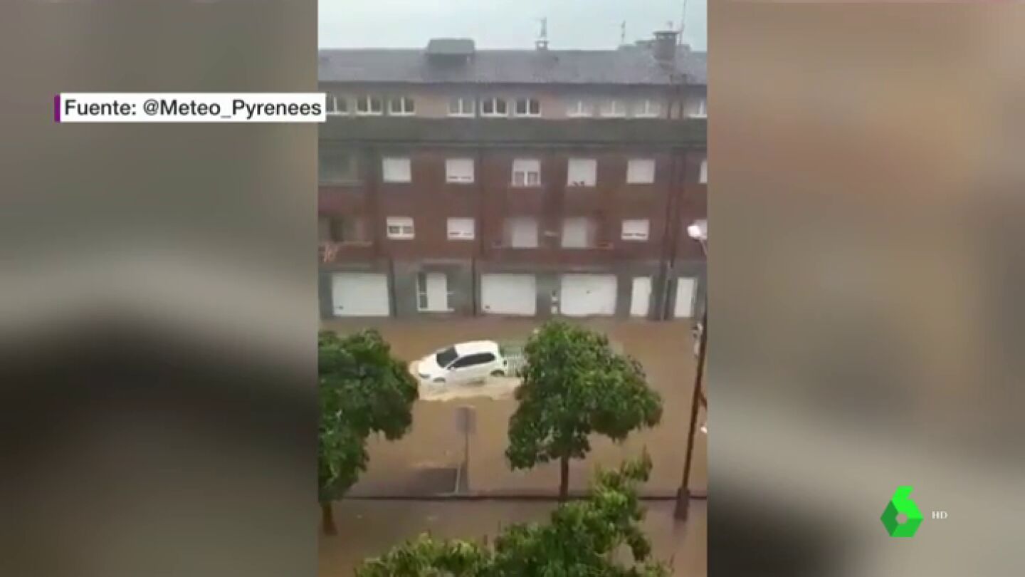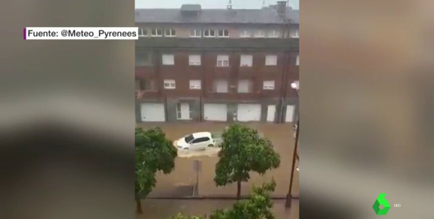 Asimismo, las calles de Andorra han quedado prácticamente anegadas y, tal como muestra el vídeo, entre varias personas han tenido que empujar un coche que se ha quedado atrapado en medio de la vía. La lluvia y el granizo tampoco ha faltado en Fraga, Huesca.