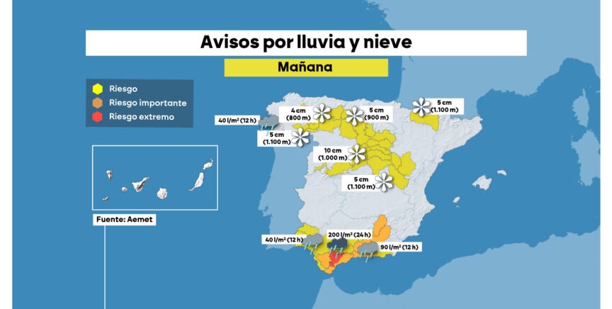 El organismo ya advirtió el lunes de que los suelos acumulan tanta humedad que las nuevas lluvias podrían causar inundaciones. La península se encuentra bajo la influencia de la borrasca Leonardo, la sexta de gran impacto de este año tras el paso de Goretti, Harry, Ingrid, Joseph y Kristin durante el mes de enero.