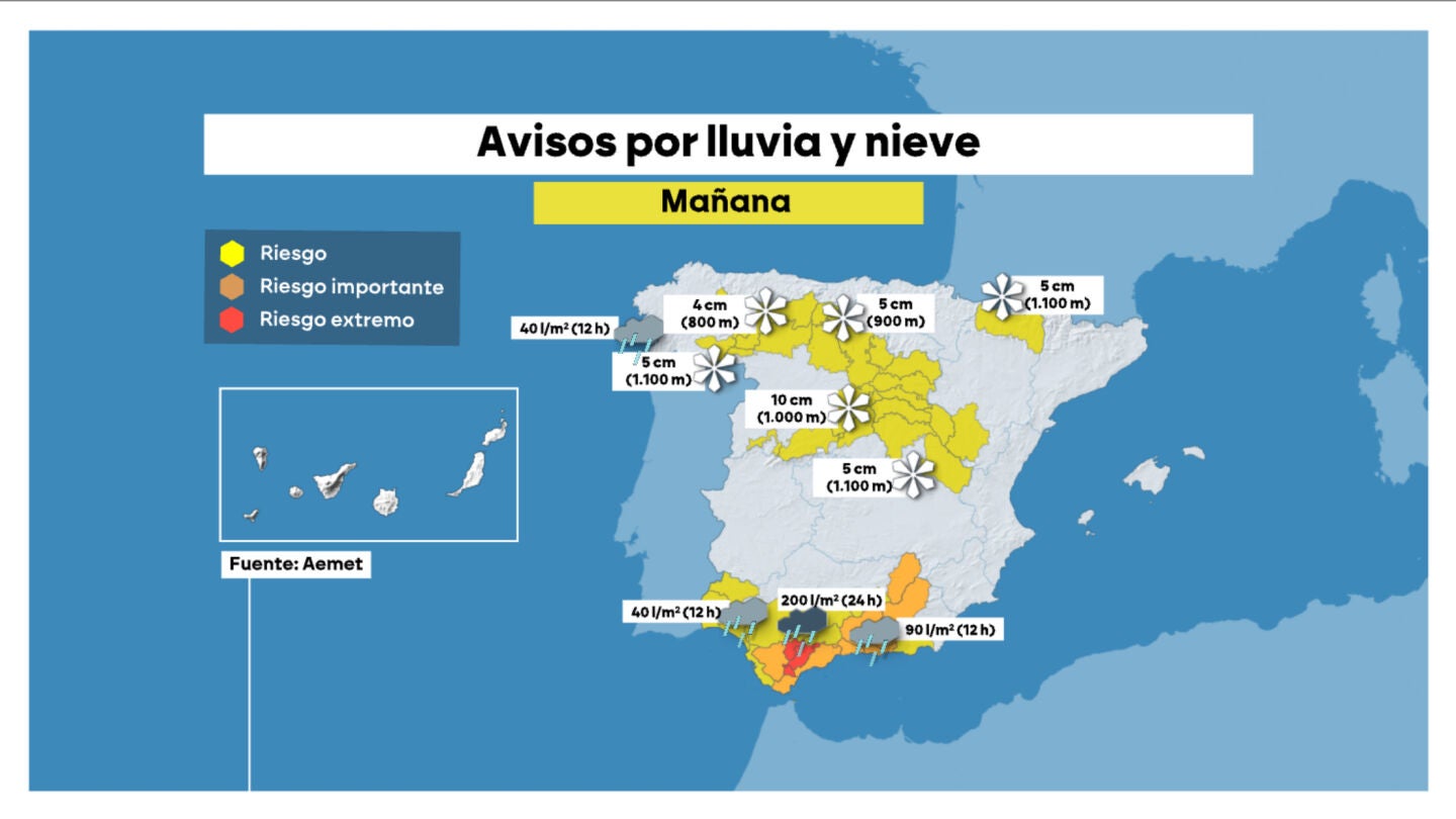 La Agencia Estatal de Meteorología (Aemet) ha emitido un aviso rojo por lluvias intensas en Grazalema y Ronda, con riesgo de inundaciones debido a la borrasca Leonardo. Se espera más de 150 mm de lluvia en 12 horas. La Junta de Andalucía ha activado un comité de emergencias y suspendido las clases presenciales en todas las provincias, excepto Almería, por el temporal. El presidente Juanma Moreno ha elevado el Plan de Emergencia al nivel 2, incorporando medios extraordinarios, como la Unidad Militar de Emergencias. También se suspenden actividades en centros de día y se recomienda cancelar deportes al aire libre.