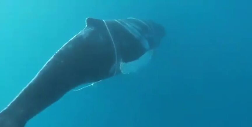 El Cabildo de Gran Canaria ha compartido un vídeo sobre el estado del animal, que se encuentra enredado en un cabo en aguas del sur de la isla.