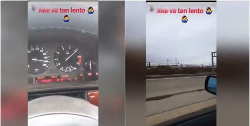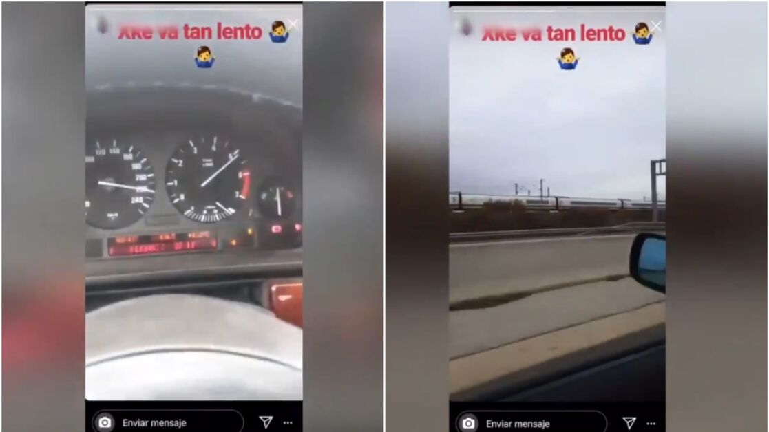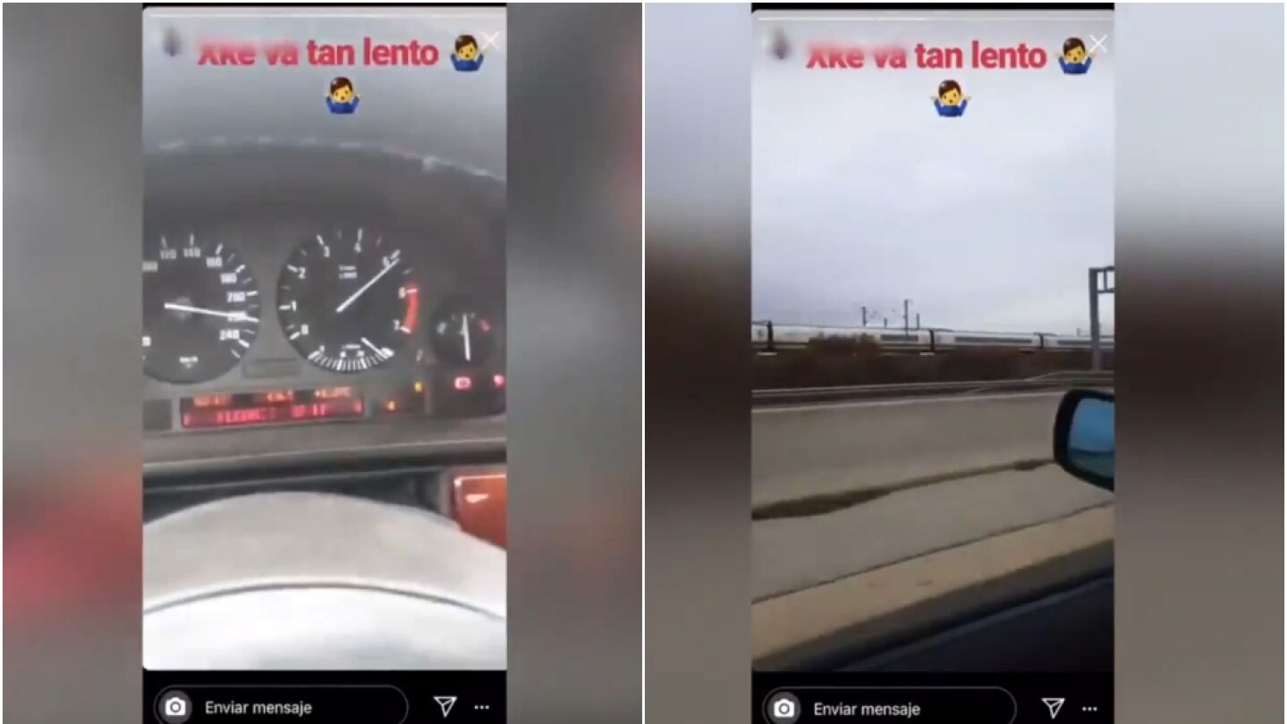 Un conductor se grabó con su teléfono mientras circulaba a 220 kilómetros por hora mientras conducía en paralelo a la vía de un AVE a la altura de la A-2. "Luego dicen que va rápido", decía mientras enfocaba su velocímetro.