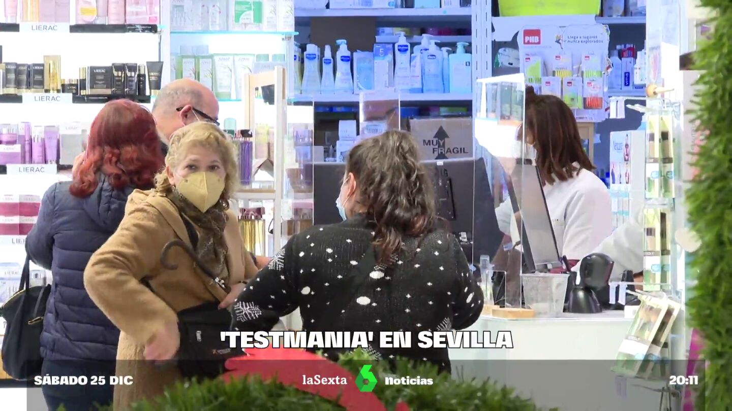 Frente a las puertas del establecimiento, las colas han sido la tónica habitual. "Hay locura por adquirir el test y poder hacerlo antes de las reuniones familiares", indican desde la farmacia.