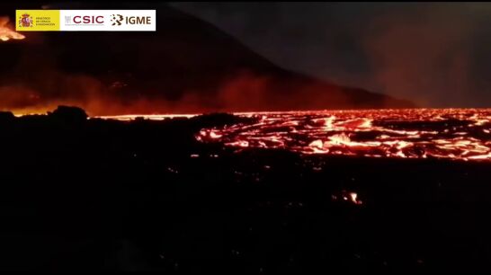En sus trabajos para tomar temperatura y muestras de la colada, los expertos han obtenido imágenes que reflejan la inmensidad de este tipo de lavas.