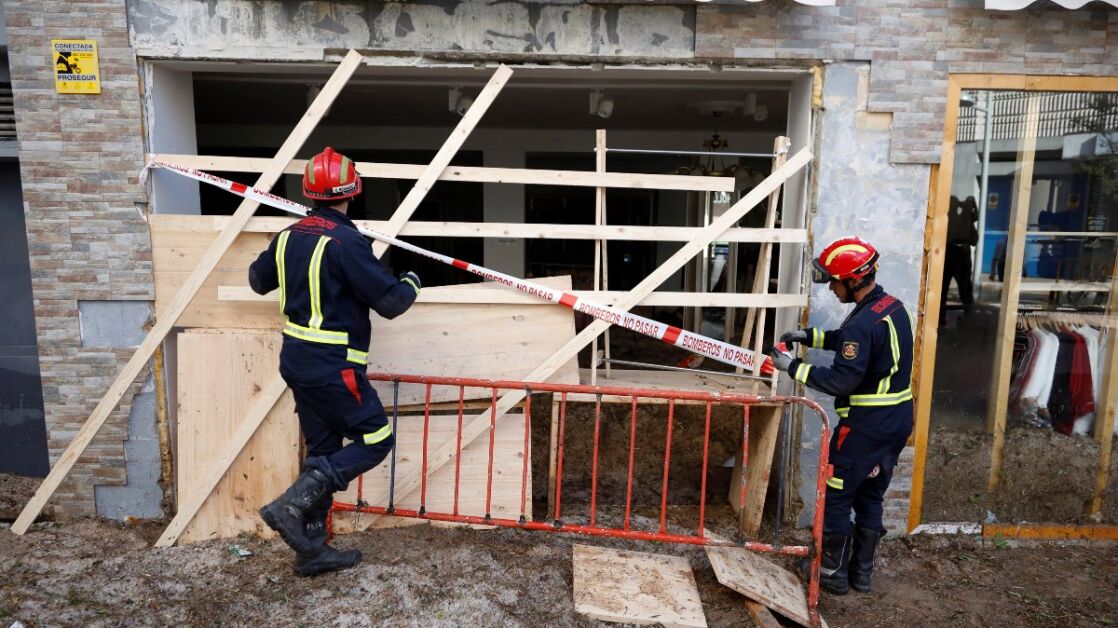 Han pasado horas retirando los restos a palazos y con cubos. "Se han dañados, ordenadores, discos duros...", explica el dueño.