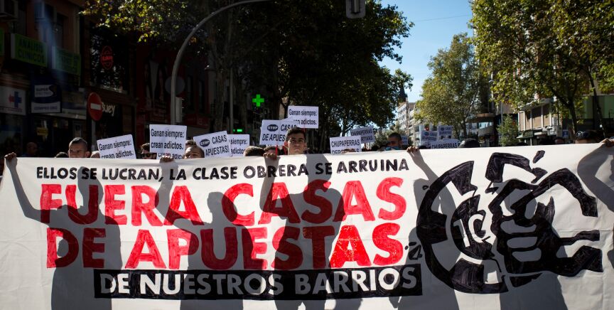 La marcha ha transcurrido entre Cuatro Caminos y Tetuán, una zona en la que recientemente se han abierto numerosas casas de apuestas y salones de juego. A la cabeza, una pancarta con el lema "Fuera casas de apuestas de nuestros barrios. Ellos se lucran, la clase obrera se arruina". "Apuesta por tu barrio" o "Menos apuestas y más propuestas" han sido las consignas de la movilización.