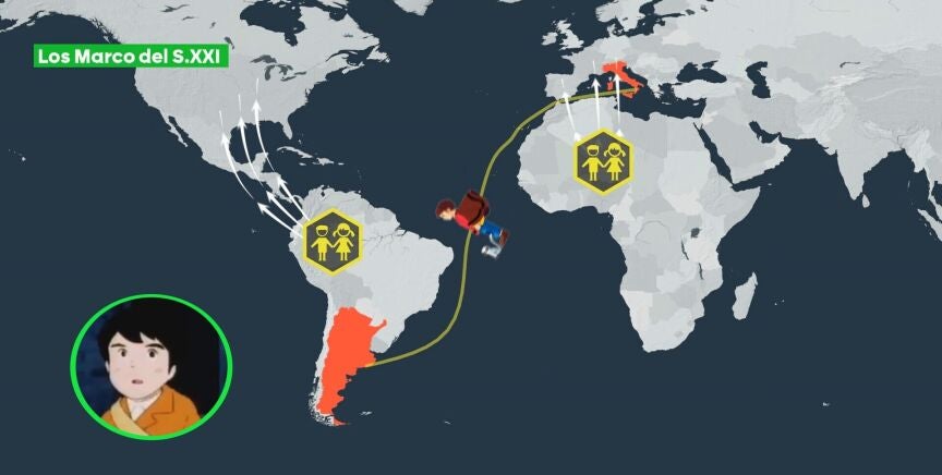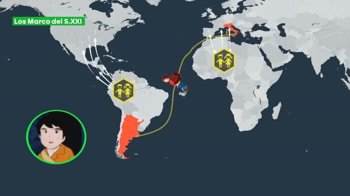 Han pasado cincuenta años desde el estreno de la serie "Marco", que narra la historia de un niño italiano que emigra a Argentina en busca de su madre, reflejando la migración de miles de italianos en el siglo XIX. Aunque es una serie de ficción, su temática sigue siendo relevante en el siglo XXI, donde niños como Marco, ahora llamados Mohamed, Teresa, Oksana, Fernando o Ajmed, enfrentan peligros similares al migrar solos. Estos menores, conocidos como "menores extranjeros no acompañados", sufren xenofobia y enfrentan los riesgos de rutas controladas por mafias. Según Karlos Castilla, profesor de Derechos Humanos, estas rutas migratorias son especialmente peligrosas para los niños que parten de África y Centroamérica hacia Europa y Estados Unidos. Aunque Marco encontró a su madre, muchos niños actuales no logran llegar a su destino, enfrentando más peligros que los que se narran en la serie.