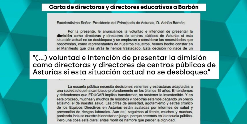 Más de un centenar de directores de colegios públicos en Asturias han enviado una carta al presidente del Principado, Adrián Barbón, manifestando su intención de dimitir en bloque si no se toman medidas inmediatas para solucionar la precariedad en sus centros. Esta advertencia llega en un contexto de crisis educativa tras la dimisión de la consejera de Educación, Lydia Espina, y una huelga indefinida por mejoras salariales y laborales. Los directores exigen un acuerdo que mejore la calidad educativa, incluyendo aumento de plantillas, reducción de burocracia y equiparación salarial con otras comunidades. La carta refleja el descontento ante la falta de recursos y apoyo.