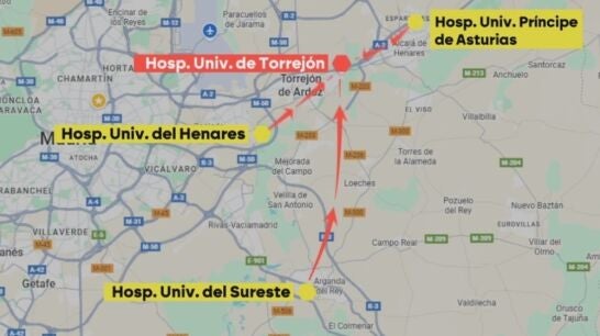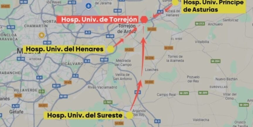 Pero, ¿esos pacientes de dónde provienen? Lo normal es que la gente busque los que tiene más cerca. Si nos fijamos en el hospital de Torrejón muchos de esos pacientes llegan del Príncipe de Asturias, del Sureste y del Henares. Justo estos tres hospitales públicos, como podemos ver en la tabla que aparece en el vídeo que acompaña esta noticia, han ido perdiendo pacientes.
