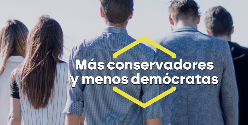 La juventud que debería empujar el cambio parece que pisa el freno y mira al pasado. "Defienden menos la pluralidad tanto cultural como racial, cuestionan la igualdad de género", ha explicado Javier Lorente, uno de los autores y profesor de Ciencias Políticas en la Universidad Rey Juan Carlos de Madrid.