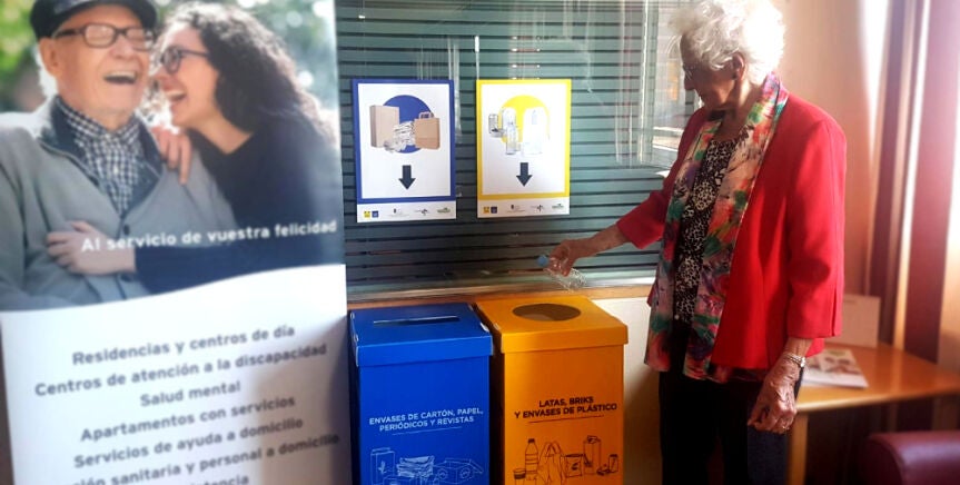 'Terceros en edad, primeros en reciclar' no se reduce solo en hacer actividades de animación y formación con los residentes o usuarios de los centros. Va más allá. Los centros residenciales o de día que participan reciben diferentes cubos de basura para que resulte más sencillo separar los residuos. Además, los pasillos de los edificios quedan llenos de señalizaciones y dibujos que te recuerdan cómo debes utilizarlos.