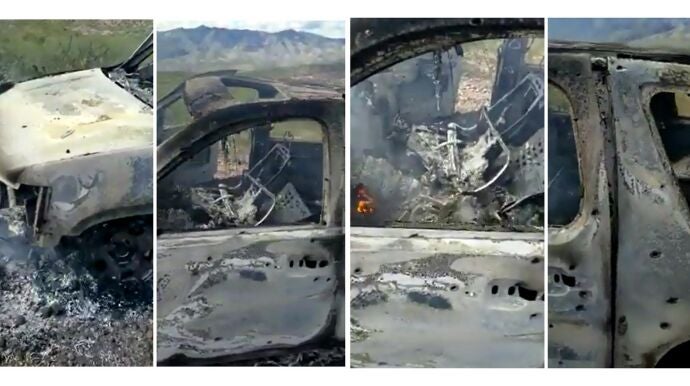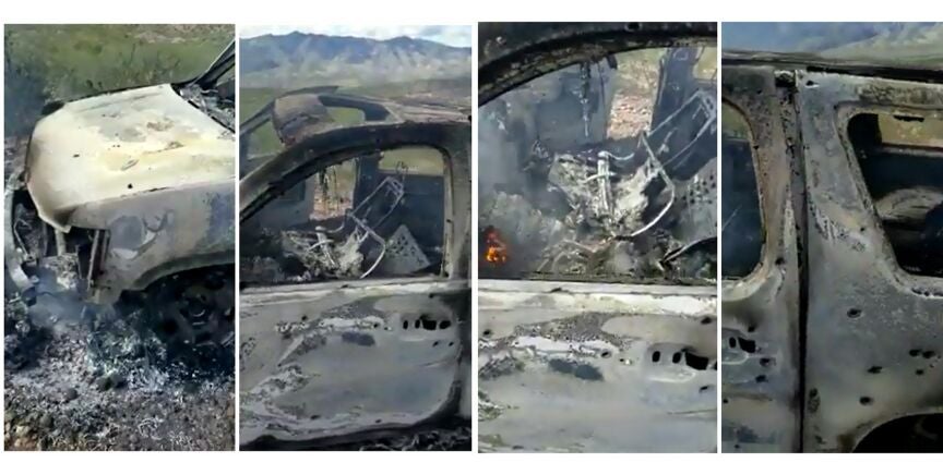En las imágenes obtenidas tras el ataque se puede observar una camioneta calcinada, todavía con llamas en su interior, y con múltiples agujeros de bala. "Rhonita y cuatro de mis nietos han sido quemados tras un tiroteo", denunciaba el activista Julián LeBarón.