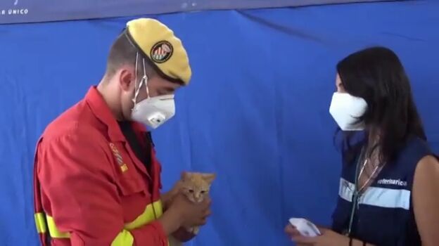 El cabo de la UME Juan Carlos Núñez tuvo que realizarle una reanimación cardiopulmonar a un gato que había entrado en parada cardiorrespiratoria. Ahora ha decidido adoptarlo y llamarle 'Laguna'.