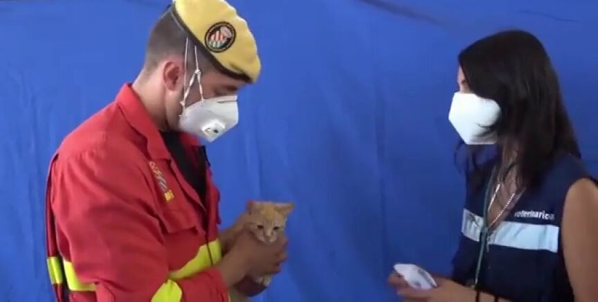Tras ser reanimado, el gato fue atendido por el equipo de veterinarios que asiste a los animales afectados por la erupción volcánica y tras haberse recuperado plenamente se ha unido a su nuevo compañero y salvador.