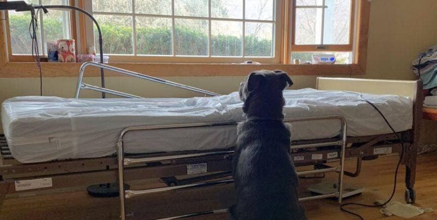 Una muestra más de que el amor de los animales es incondicional es Moose, un labrador de tres años que después de que falleciese su dueño continuó días sentado frente a la cama que tenía en el hospital, esperando a que regresara.