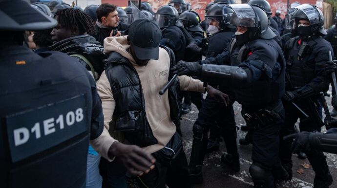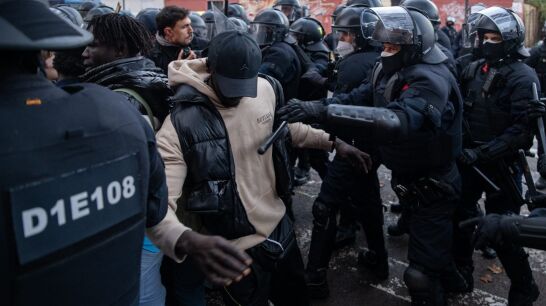 A medida que iban desalojando a los migrantes, la tensión ha aumentado y se ha trasladado a la plaza aledaña donde los migrantes desalojados se han reunido con los manifestantes que protestaban por el desalojo. Estos han lanzado piedras, latas y botellas.