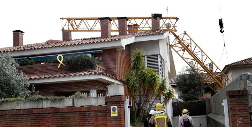 Los Bomberos de la Generalitat han informado de que el accidente se ha producido poco después de las 12.00 horas en el número 35 de la calle Major de esta localidad del Baix Llobregat, donde una grúa telescópica estaba retirando otra grúa fija que había sido utilizada en las obras de construcción de un edificio.