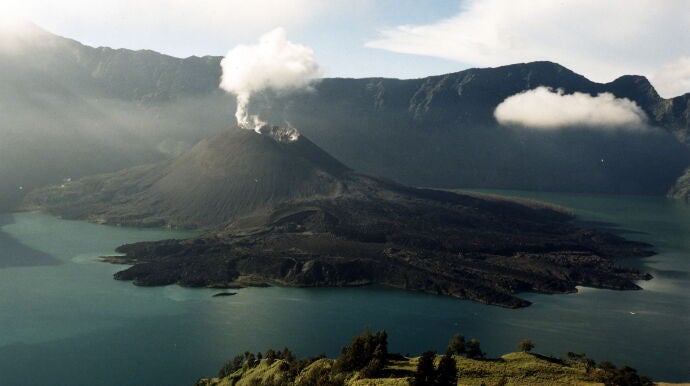 El Rinjani es un volcán activo, el segundo más alto de Indonesia, con una altitud de más de 3.700 metros. La protección del volcán corre por cuenta del Parque Nacional Gunung Rinjani desde 1997. El Rinjani ha aumentado en popularidad gracias al turismo, dado que tiene rutas que permiten llegar hasta la caldera e incluso alcanzar el punto más alto del volcán. En 2007, un grupo de siete estudiantes fallecieron mientras hacían la ruta para alcanzar el pico en condiciones atmosféricas peligrosas.